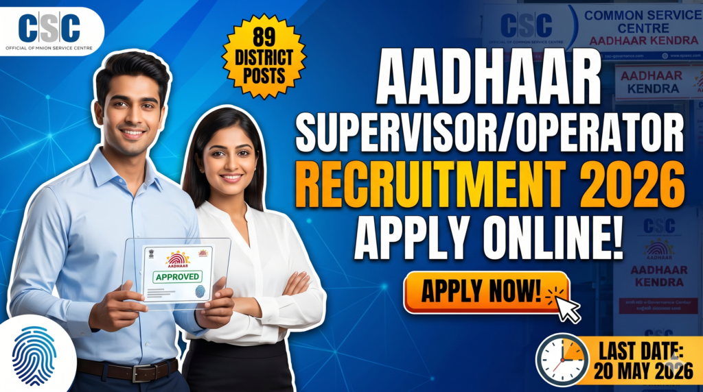Aadhaar Operator/Supervisor Recruitment 2026 – Apply Online